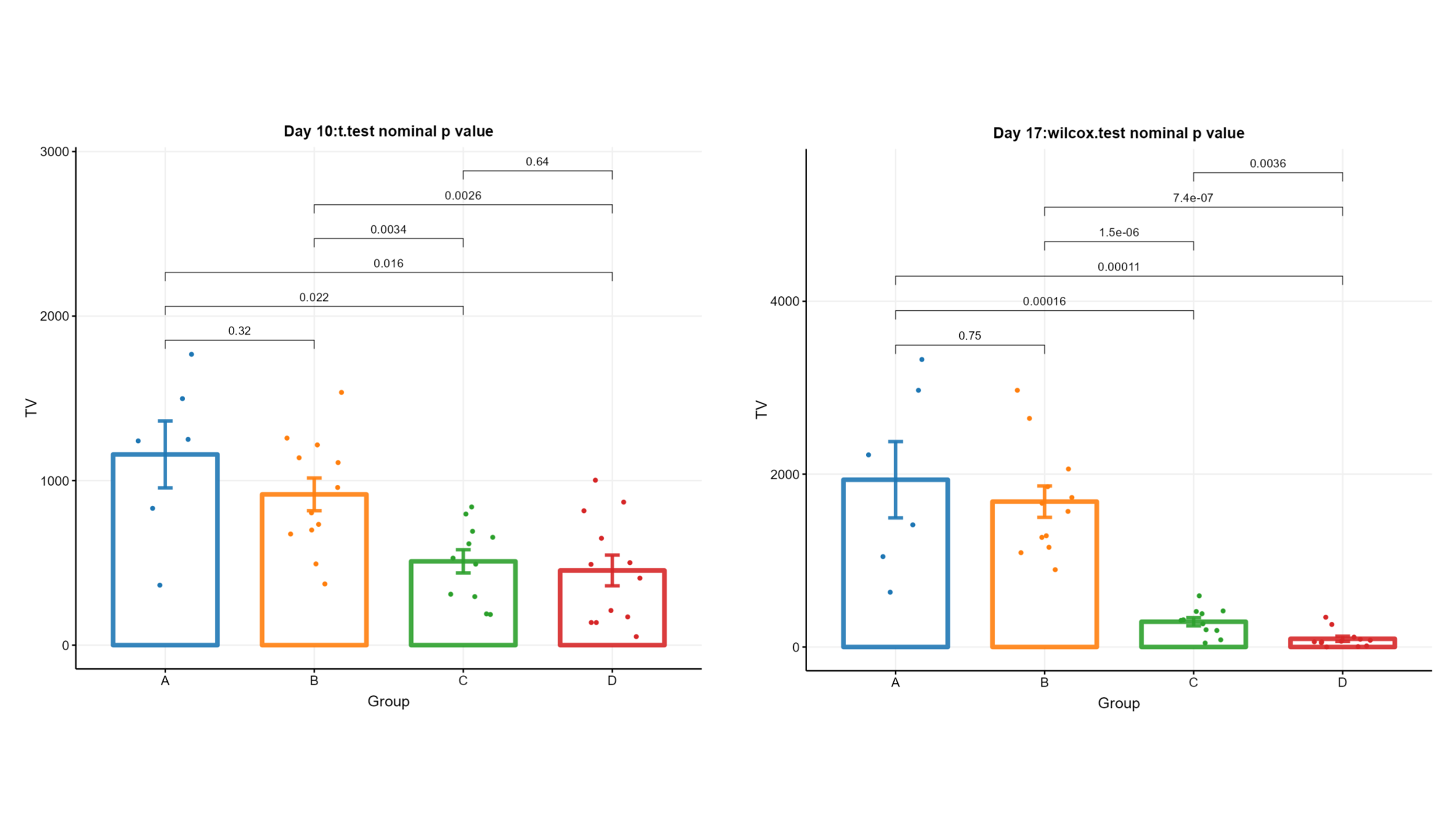 Performing analysis for animal study data to quantify and compare drug efficacy.